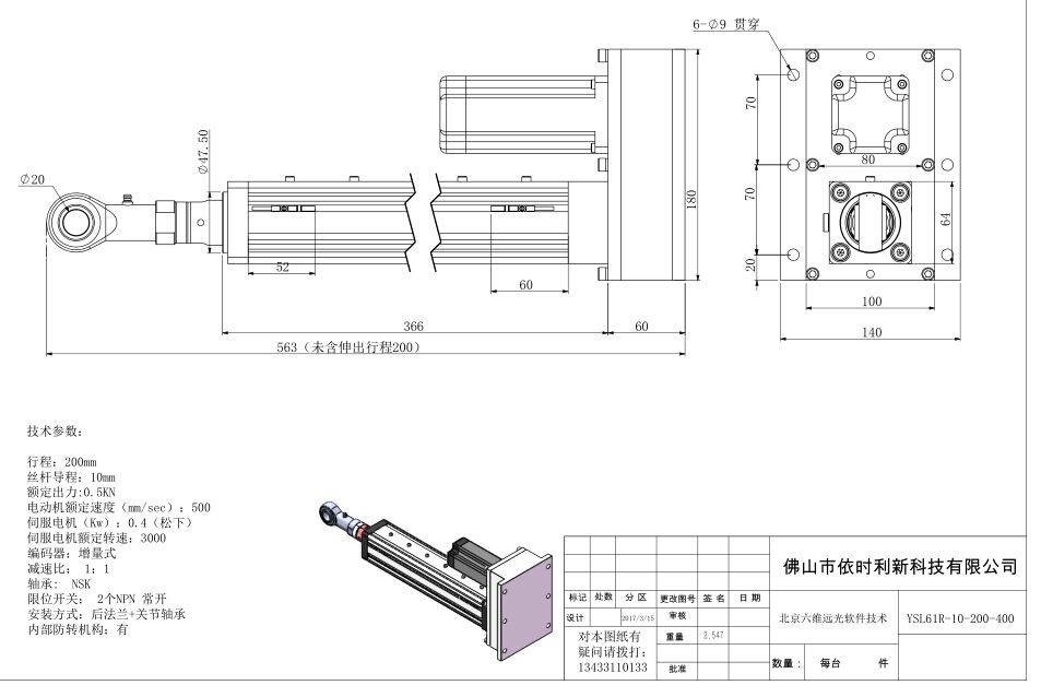 行程200mm出力0.5KN折返式伺服電動缸